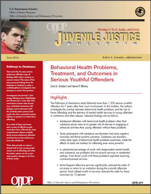 Behavioral Health Problems, Treatment, and Outcomes in Serious Adolescent Offenders (Bulletin)