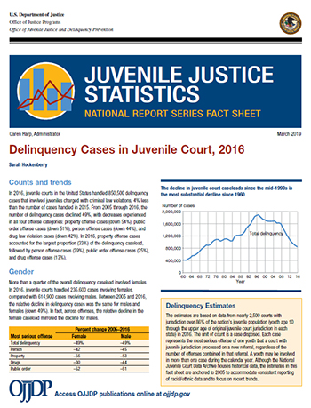 Delinquency Cases in Juvenile Court, 2016 (Fact Sheet, National Report Series)